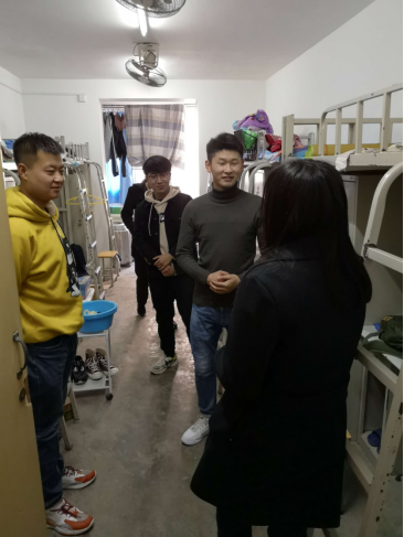 在员工宿舍,辅导员询问了同学们的学习情况、假期的生活见闻和对新学期的计划,并认真了解了员工的返校情况,着重强调了宿舍秩序、卫生、安全隐患等方面存在的问题。希望同学们注意宿舍安全和卫生,合理安排新学期。