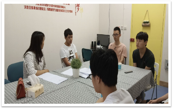 首先冯老师询问了同学们的上课情况及近期学习、生活情况,要求大家要认真学习,克服心理障碍,期末考试临近,主动与任课老师沟通交流,自信面对期末考试。她强调:同学们要正确对待学籍处理,思想上融入,行动上接受,总结教训、找准问题、树立信心、制定措施、刻苦努力,增强学习的自觉性,报着对家庭、个人负责的态度,争取顺利完成学业。随后,同学们认真填写调查问卷,掌握员工存在的问题,了解员工状况。就个人存在的困难和问题进行了座谈发言。同学们纷纷表示:感谢老师对我们的学习、生活、成长的关心,非常鼓舞,迷茫之际为我们理清思路和方向,今后要积极投入到学习中,做好规划,转变学习态度,顺利完成学业。