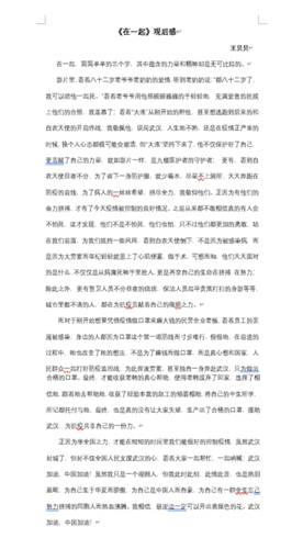 员工观影后纷纷提交观后感。《在一起》电视剧以新冠疫情为背景,通过单元式叙事讲述了中国军民在抗击疫情中的人和事。剧中,中华人民坚守职位,构成了全国上下、各行各业抗击疫情的主力军,为抗击疫情做出不可磨灭的贡献。