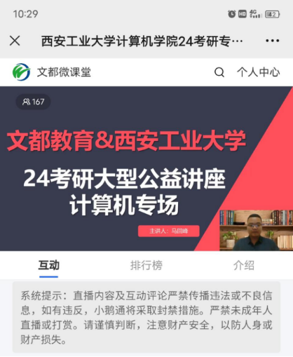 讲座内容得到了员工们的广泛认可,在弹幕区与马回峰老师进行了热烈的探讨,在马老师细心的讲解和解答下,帮助学子们认清了2024届员工考研的严峻形势,对未来的发展方向有了一定认知,特别是专业院校规划方法技巧对员工们在院校选择方面提供了实用性的指导,同时对接下来的暑期复习有了清晰的规划。