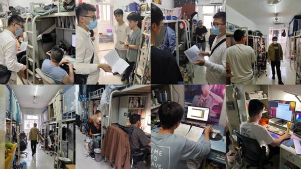 此外,辅导员们深入细致地关怀员工的生活情况,了解大家有无生活上的困难,提醒同学们按时做核酸、每天开窗通风、及时清理垃圾,并强调静态管理要求:非必要不出宿舍,外出要戴好口罩,不堂食、不聚集;如有困难,及时告知辅导员协调解决。目前,大部分宿舍卫生状况良好,员工们线上教学秩序井然。