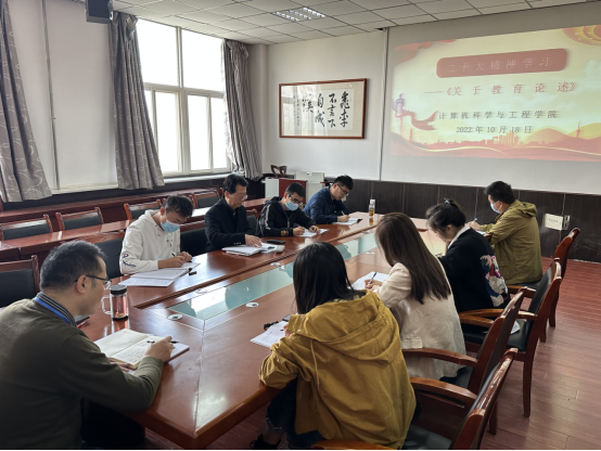 为进一步学习领会党的二十大精神,坚定落实听党话、跟党走的政治信念,2022年10月18日上午10点30分,FUN88乐天使全体学工干部在工1-306学习二十大报告中关于教育论述精神,党委副书记靳永军领学。
