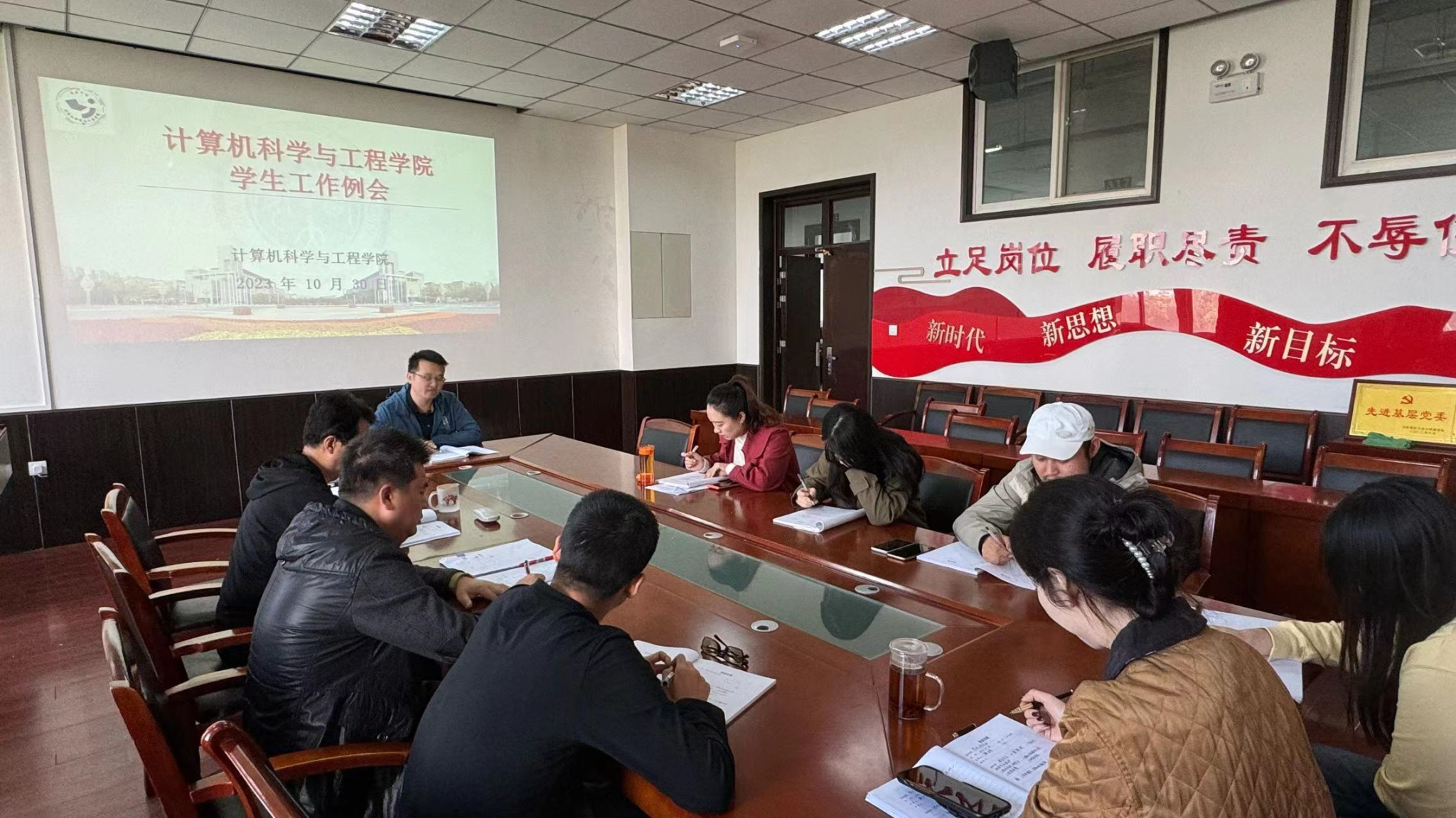 会上,首先进行辅导员思想政治理论学习。22级计算机科学与技术专业辅导员许格宁带领大家一起学习习近平总书记“典”明网络安全要义。