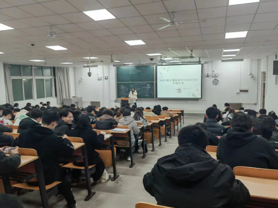 11月13日晚,21级计算机科学与技术专业在教1-201召开年级大会,本次会议由辅导员王梦馨主持,21级计科专业全体同学参加。