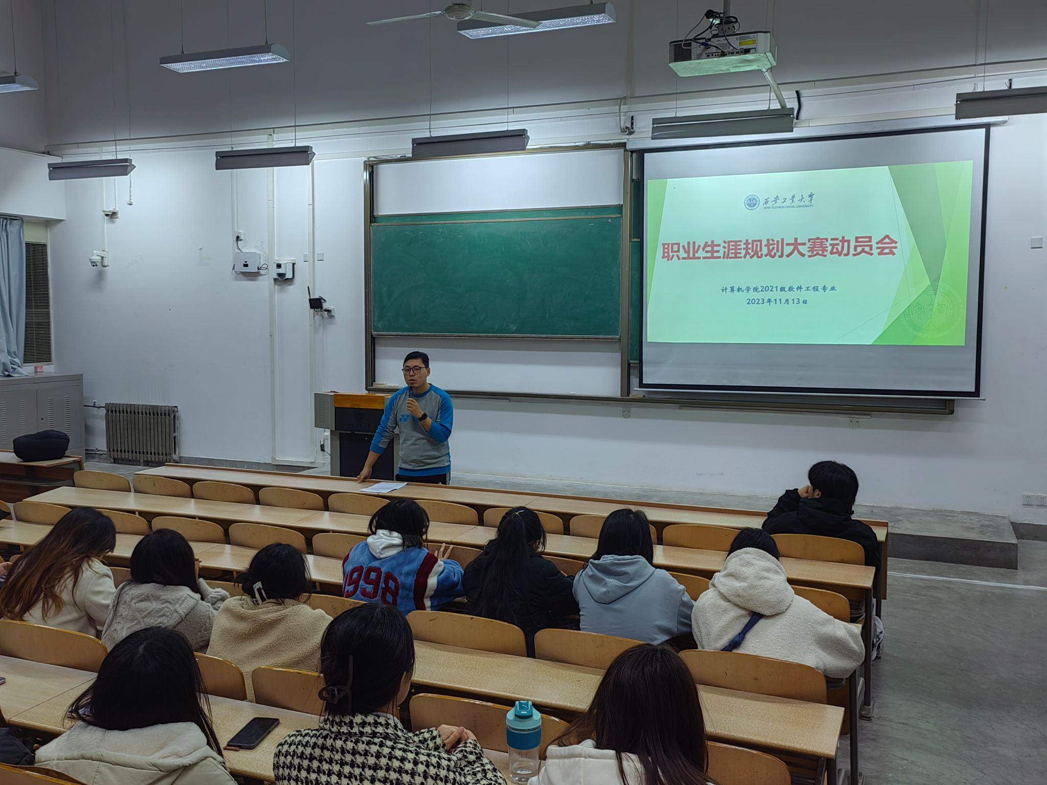 为进一步强化员工职业生涯规划意识,引导员工树立正确的成才观、就业观,科学规划学业和职业,按照公司《关于举办FUN88乐天使首届职业规划大赛FUN88乐天使初赛的通知》要求,11月13日下午,21级软件工程专业利用年级大会进行了大赛动员及简单培训。辅导员安春雨主持。