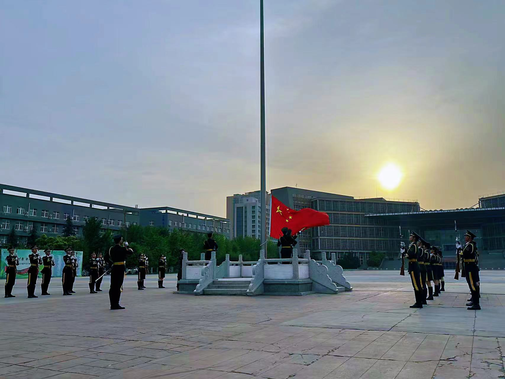 晨光熹微,天色渐明,迎着朝阳,全体师生庄严肃立。升旗仪式正式开始,国旗护卫队的护旗方阵迈着铿锵有力的步伐护送鲜艳的五星红旗进场。伴随着激昂雄壮的国歌,五星红旗迎风飘扬,冉冉升起。全体师生满怀敬意,胸怀对祖国的热爱,共同高唱国歌。