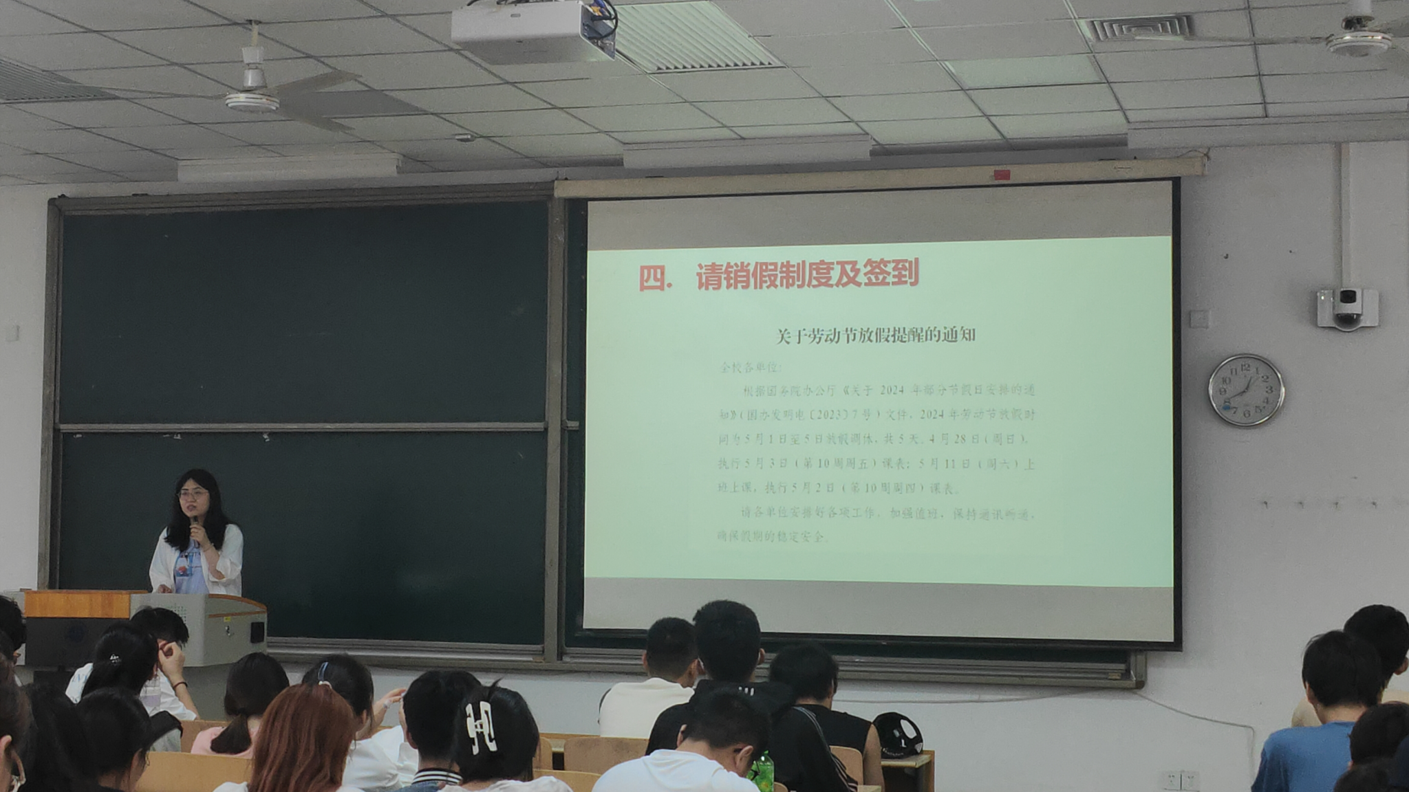 22级辅导员赵雨柔、吴宗原、孙君三位老师在五·一假期即将来临之际利用PPT、视频等多媒体资源,从不同角度和层面对人身财产安全、交通安全、网络安全、消防安全、饮食安全等重要内容进行了深入讲解。并针对人身安全、电信网络防骗等方面,结合真实案例,对大家进行了重点强调和温馨提示,要求同学们根据自身实际情况提高自我保护能力。