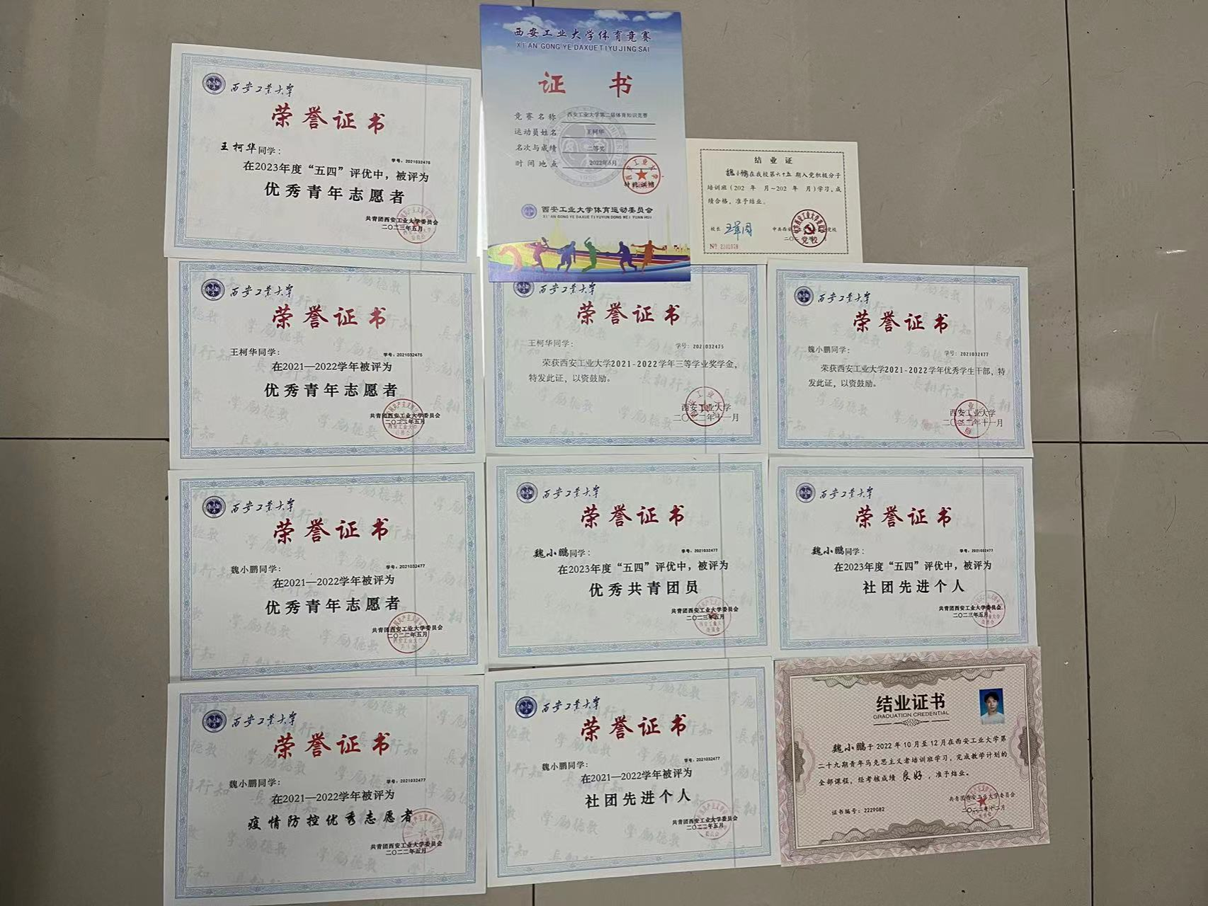 绩点在专业前30%接近半数、宿舍整体无挂科。积极参加公司组织的各类比赛,也荣获许多奖项,王柯华获得2021~2022优秀志愿者、2022~2023优秀志愿者、校级体育知识竞赛二等奖、三等学业奖学金;魏小鹏在获得2022优秀疫情防控志愿者、2021~2022优秀志愿者、2022社团先进个人、校级优秀员工干部、优秀共青团员、国家励志奖学金、互联网+校赛铜奖,宿舍团体获得2022年度五四红旗团小组