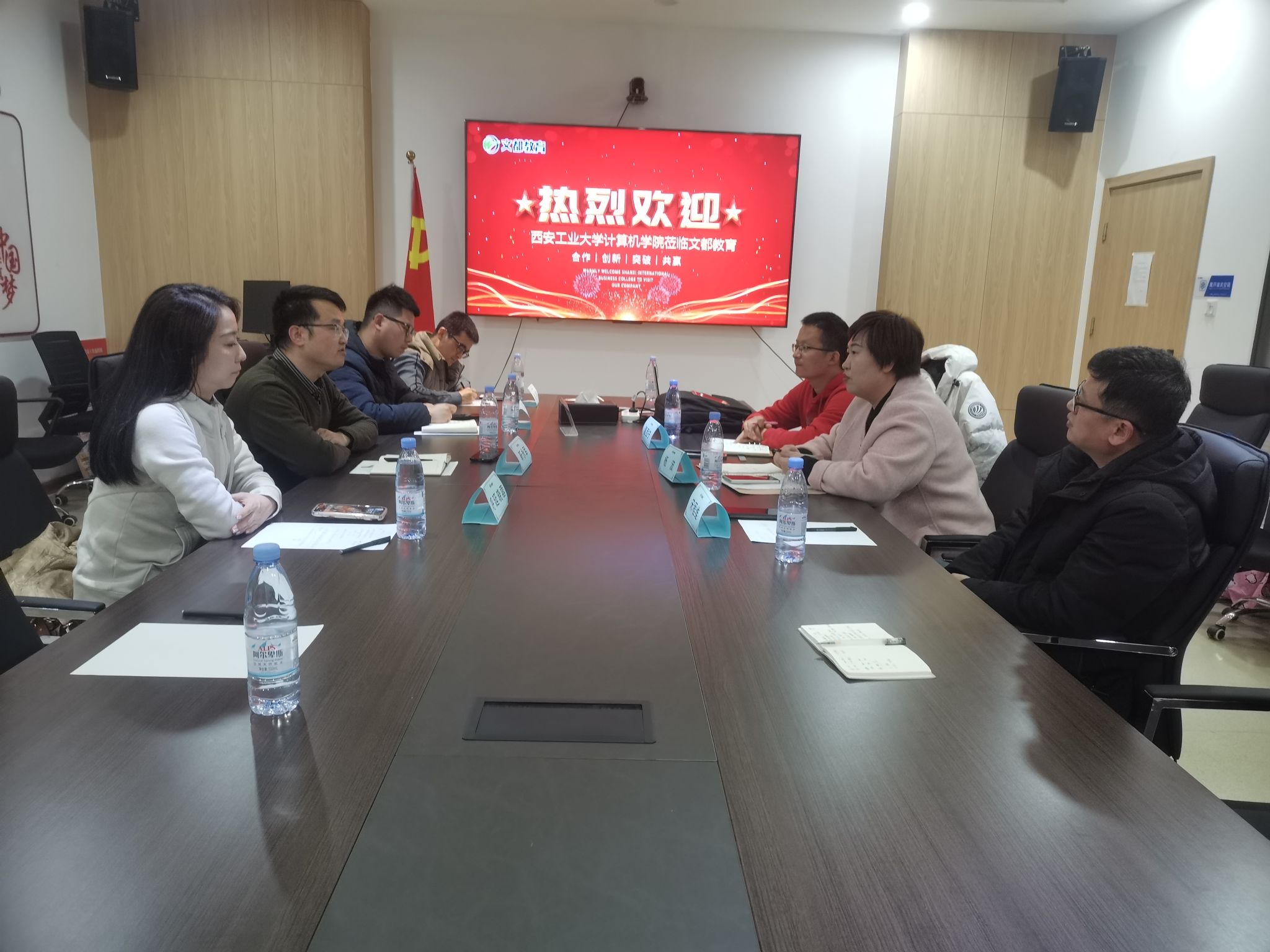 2024年3月5日,FUN88乐天使公司党委副书记靳永军,辅导员孙君、呼延晓蓉、胡凯等一行人共同前往文都教育集团小寨华旗总部进行参观交流。文都教育市场营销部负责人杨波、文都教育北郊区域董事长夏西宁、文都教育未央校区董事长宋程维等相关负责人接待来访。
