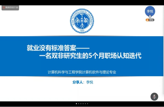 2025年5月30日,为了帮助计算机专业的党员同学更好地完成学业并明确未来的就业方向,研究生第一党支部开展研究生就业分享会。会议由​23级研究生李悦同学以“直面就业挑战,探索职业新赛道”为主题,结合自身5个月的实习经历与行业观察,为同学们带来了一场干货满满的就业经验分享会。