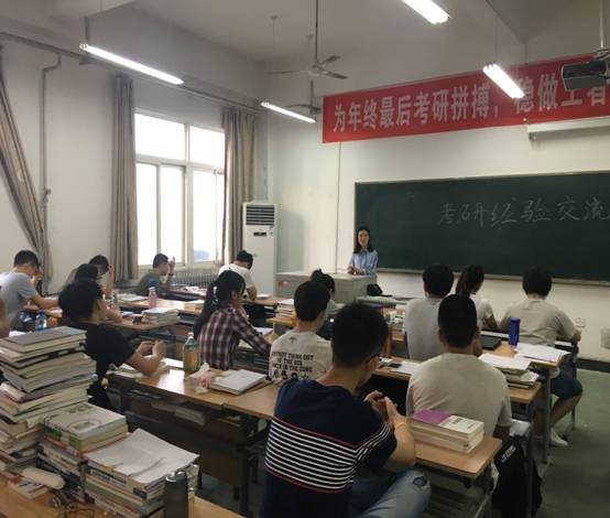 会议由辅导员刘薇老师主持,已经考取西北工业大学研究生的寇雪娇同学在会议上分享了自己在考研过程中的宝贵经验。她从考研公司和专业的选择,考研初试课程数学、英语、专业课复习时间的安排,以及在复试中应该注意的问题等向同学们分享了自己的心得和经验。随后,同学们踊跃发言提问,相互交流了自己对考研复习的努力和体会。最后,刘薇老师希望同学能够脚踏实地认真复习备考,坚持不懈的朝着选定的目标努力拼搏。