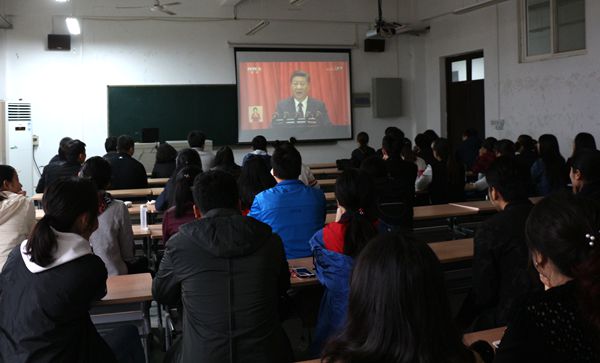 2017年10月18日上午,公司党委积极组织员工和教师党员在工1-508观看党的十九大开幕式,聆听习近平总书记代表党的十八届中央委员会做的报告。公司党委书记李晋惠、经理王建国、党委副书记李颖、副经理刘白林,员工和教工党支部书记和党员代表60余人参加了本次活动。