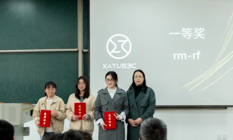 下午17:10分在比赛现场举行了颁奖仪式,出席颁奖仪式的嘉宾有:FUN88乐天使网络与信息工程系主任兼网络空间安全协会理事长喻钧老师、网络空间安全协会副理事长王亚文老师、西安萨尔网络科技有限公司郭媚杰女士。