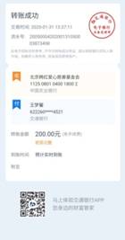 公司员工第六党支部支部书记王梦馨同志,关心国家战“疫”大事,通过北京韩红爱心慈善基金会捐款200元。支持当前国家防疫工作。员工第七支部支部书记董元浩同志,心系国家抗疫大计,通过湖北省慈善总会捐款100元。研究生支部黄俞博同志,积极关心国家防疫情况,并向中华思源工程扶贫基金会捐赠两百元,支持当前国家防疫工作。