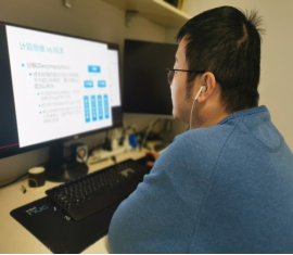 黄姝娟老师在《物联网系统设计与应用》课程上邀请员工共享屏幕,指导员工调试软件中出现的问题,提高了员工的动手能力。