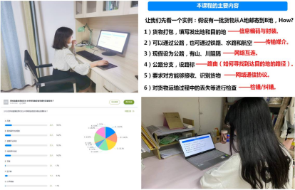 刘宝龙老师以“一码通崩溃的原因是什么?”从专业角度分析后,引出《数据库原理与应用》的课程介绍,巧妙进入授课阶段。王辉老师以多选题“网络直播授课时发生卡顿等现象是受哪些因素影响?”自然而然引入《计算机通信与网络》课程;马静老师以“你能选出计算机的基本组成吗?”巧妙引入《计算机组成与体系结构》课程;赵宇峰老师以大家耳熟能详的HTTP、IP地址等设问引入《计算机通信与网络》课程;激发员工兴趣,互动效果良好。耿军雪老师在《算法设计与分析》的第二节课下发选择题,要求员工限时计算,确保员工们按时上课和有效听讲。叶昕老师在《编译原理》课程中用一个小例子对比编译和解释的区别引入课程。
