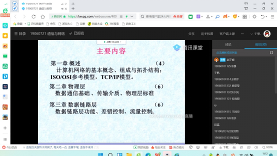 黄姝娟老师使用腾讯会议(356-4618-976)+QQ直播授课,结合学习通建课完成《物联网系统设计与应用》开学第一课的线上授课。她首先介绍了该课程相关内容和考核方法,描述了每章的章节内容和员工作业,展示了实验视频,作业视频等上届员工所做内容,引发员工学习兴趣,期间,和员工互动良好,用QT做动画小车运行演示,员工积极展示自己的成果,并给予共享屏幕展示成果的同学记录课堂分数;此后,通过点名李博文同学,邀请共享屏幕,该员工软件存在问题,及时给予指导调试通过,大大激发了员工动手编程的兴趣。