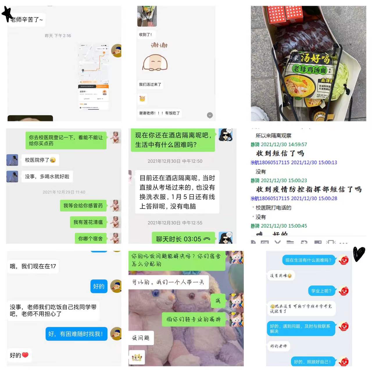 连日来,FUN88乐天使对在校员工和校外住宿员工开展了一系列关心关爱帮扶行动,主动了解问题,及时替员工排忧解难。得知员工口罩不多了,辅导员孙君、吴宗原连夜“送货上门”,为员工分发口罩;为确保员工安全平稳地度过跨年夜,靳永军带领办公室主任焦建军、辅导员孙君、王梦馨、呼延晓蓉、吴宗原、于杰在宿舍内逐间走访宿舍,发放慰问品,送去新年问候和节日祝福,直到深夜;公司也时刻心系住在校外、隔离在17公寓的员工们,虽不能见面,但对员工的拳拳爱护之心,在一声声日常问候中静静流淌。考虑到隔离中的同学存在学习和生活上的困难,FUN88乐天使全体学工干部想尽办法、排除万难,给校外隔离的员工送去电脑和生活用品,给校内隔离的同学送去节日慰问品;了解到两名住在碧桂园凤凰城的女生缺少生活物资,辅导员李凯及时通过UU跑腿,给两名女生送去了蛋、蔬菜、水果、速食品等食材,让员工能衣食无忧地度过新年;隔离疫情,不隔离爱,我们的每一分努力,都是为了让员工感受到在校如在家的温暖。