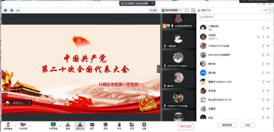 2022年10月21日19点,公司员工第一党支部开展“贯彻落实党的二十大精神”党日活动,参会人员有支部书记呼延晓蓉,正式党员、发展对象以及所有积极分子。