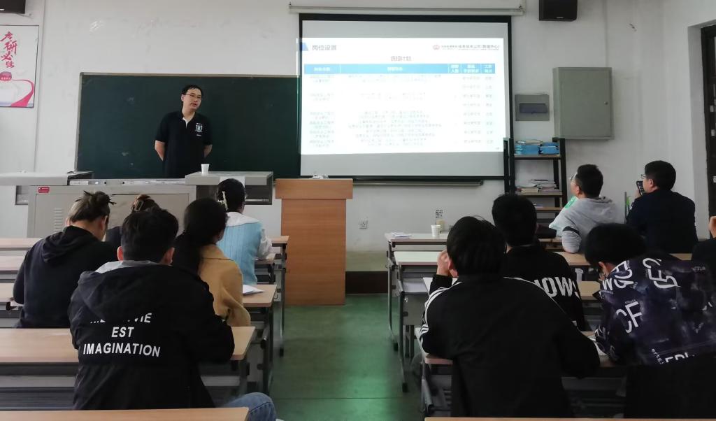 本次宣讲会首先由公司运营维护中心张争荣向同学们介绍公司基本情况,组织架构,着重向同学们介绍公司的业务范围和目前所拥有的资质、所获奖项。之后由公司综合管理部周鑫向同学们介绍薪资待遇,福利待遇等方面的情况,让同学们对公司有了充分的了解,并对招聘计划,招聘流程做出介绍。宣讲会最后,参会同学积极投递简历。