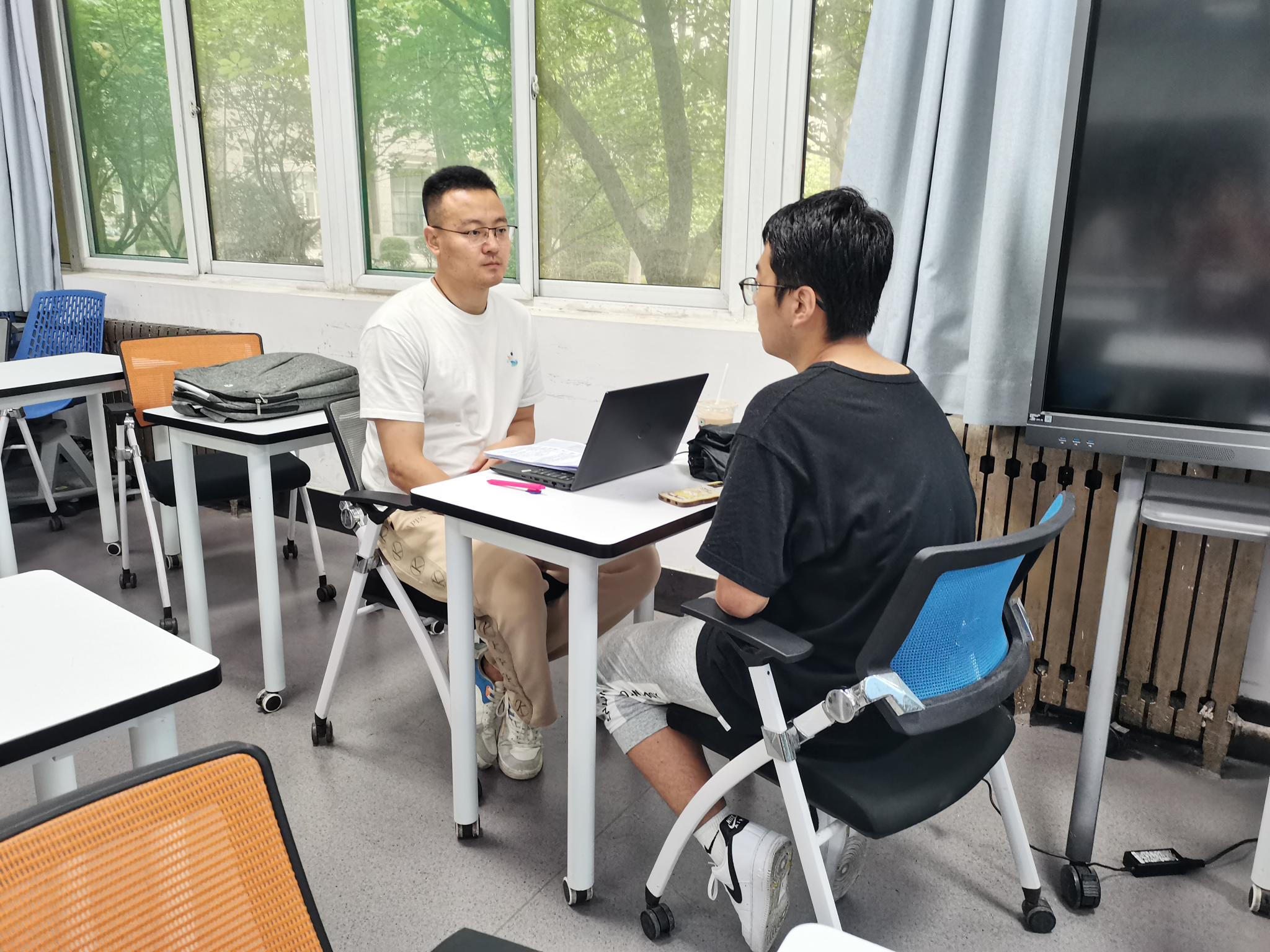 宣讲会结束后,公司在教3-104、106组织员工进行岗位面试,随后将安排面试合格的员工到单位实习,实习结束通过考核的员工将签订就业协议。