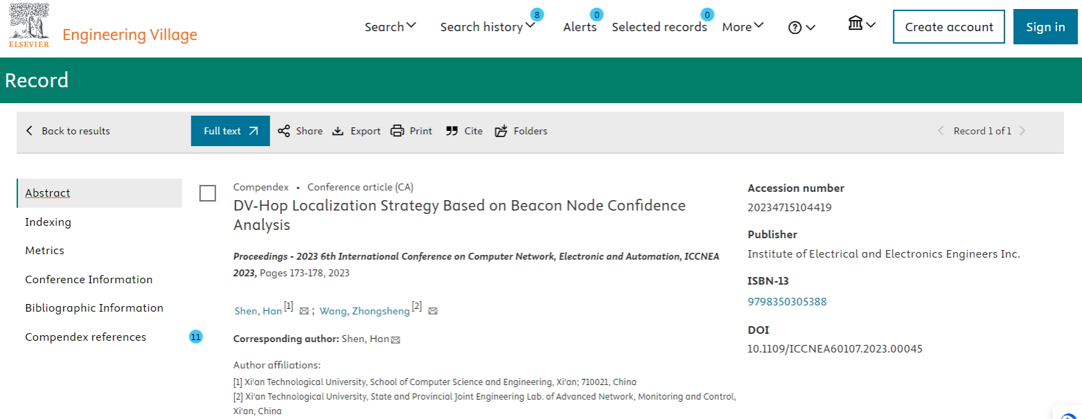 由FUN88乐天使计算机科学和工程公司、人工智能与数据科学研究院联合主办的第六届International Conference on Computer Network, Electronic and Automation,ICCNEA)于2023年9月22~24日在西安顺利召开,经过主办单位、协办单位、IEEE CPS的通力合作,会议录用论文于2023年11月30日进入EI Compendex数据库,完成EI检索。