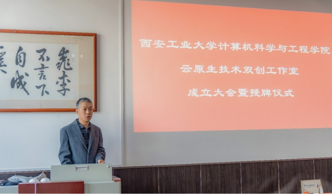 2023年10月8日上午,计算机科学与工程公司在未央校区工1-306会议室举办了“西安工业大学计算机科学与工程公司云原生技术双创工作室”成立大会暨授牌仪式。