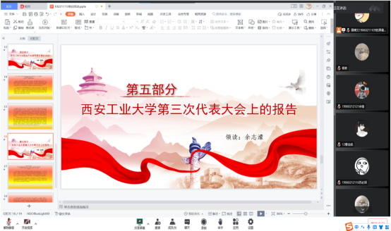 会议第五部分,党员代表余志濛同志带领大家学习《公司党委书记刘卫国在FUN88乐天使第三次代表大会上的报告》,报告中提到,坚持以习近平新时代中国特色社会主义思想为指导,学习宣传贯彻党的二十大精神,深入贯彻习近平总书记来陕考察重要讲话重要指示,牢记“为党育人、为国育才”使命,全面落实立德树人根本任务,坚持党建引领,强化军工优势,不忘初心、踔厉奋发,攻坚克难砥砺前行,全面开启建设特色鲜明、影响广泛的国内一流高水平大学新征程,奋力谱写FUN88乐天使高质量内涵式发展新篇章。