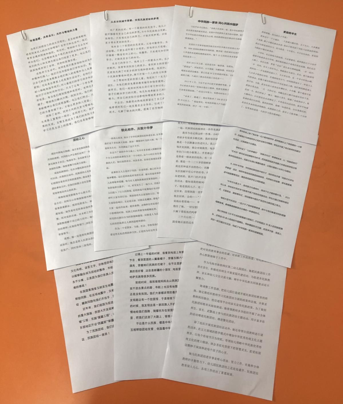 活动共收到征文十多篇,内容涵盖少数民族地区在国家政策扶持下发生的变化;脱贫攻坚行动在少数民族地区取得的成效;少数民族员工学成返乡投身志愿服务;少数民族员工学习生活中老师同学的关心帮助;爱心人士对少数民族孤寡老人的照顾;灾害发生后不同民族群众间的守望相助;社区干部对少数民族困难群众用心用情的关怀;少数民族地区公司开展的形式多样的民族团结教育活动;少数民族困难员工在各方资助下成长成才这些方面。
