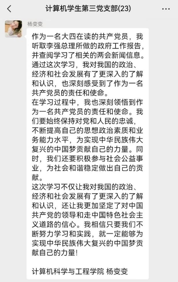 在这次活动中,支部党员深刻感受到了两会的重要性和威严性。通过观看直播、阅读新闻,了解到两会期间,代表委员们围绕国家发展的重大议题展开了热烈的讨论,提出了许多具有前瞻性和针对性的建议和意见。这让全体同志深感国家治理的严谨和科学性,也增强了大家作为党员的责任感和使命感。