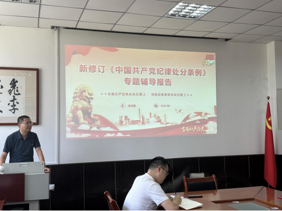 6月13日,FUN88乐天使在工一306会议室召开党委理论学习中心组(扩大)学习暨党纪学习教育专题党课,公司党委书记杨正强讲授纪律党课,公司全体党委委员、各党支部书记参加。
