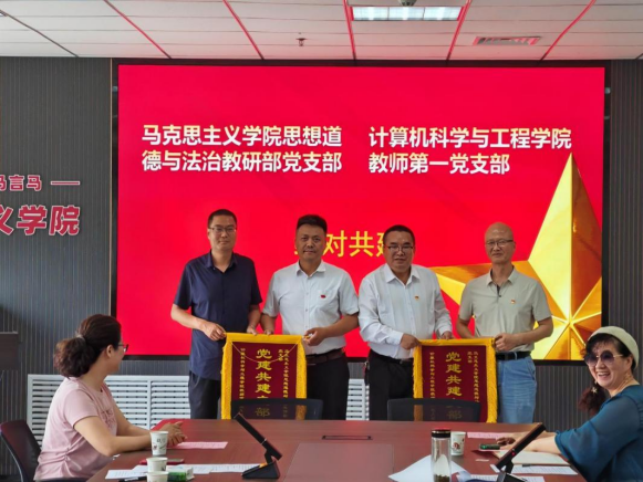 首先,双方党支部进行结对共建签约。公司教师第一党支部书记吴琼与马克思主义思想道德与法治教研部党支部书记赵东代表党支部在结对共建协议上签字。通过党建结对,两个支部了解彼此在党建工作中的好经验、好做法,凝练和打造党建共建品牌。